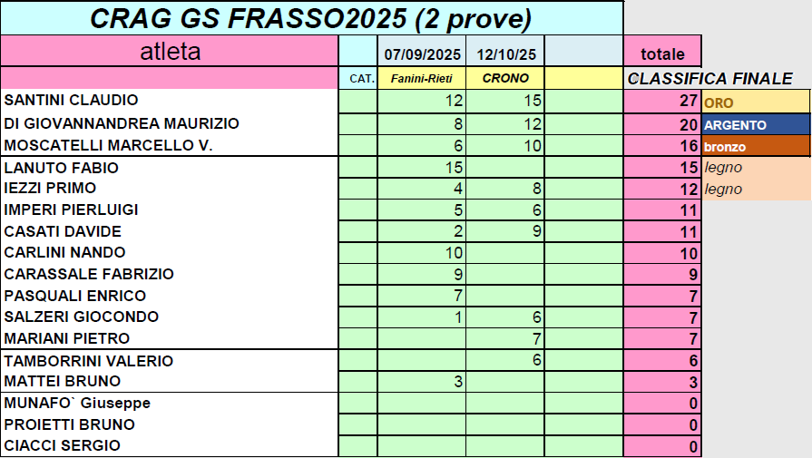 CLASSIFICHE AGONISTICHE 2025